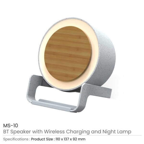 Multi-purpose BT speaker with wireless charging and night lamp.
