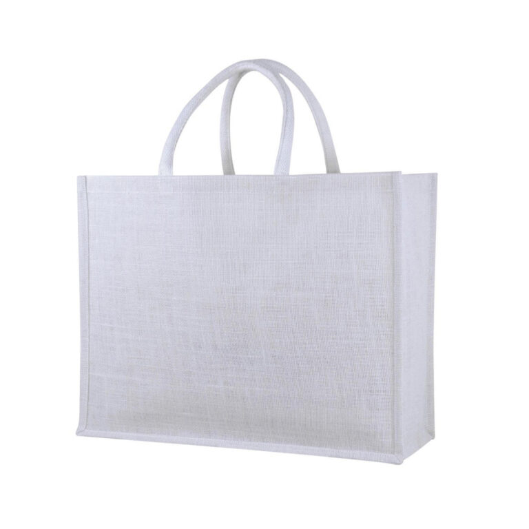 Eco-friendly jute bags with a cotton-like finish and durable webbing handle.