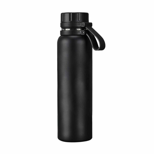 This 650 ML black thermal water bottle is designed with double-wall insulation, ensuring your drinks stay hot or cold. Its strong grip handle adds comfort, making it easy to carry while on the go.