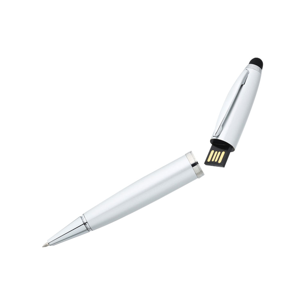 This white metal pen combines elegance with functionality, offering a built-in stylus for touchscreens and a USB storage feature, ensuring that you can work and store data on the go in style.