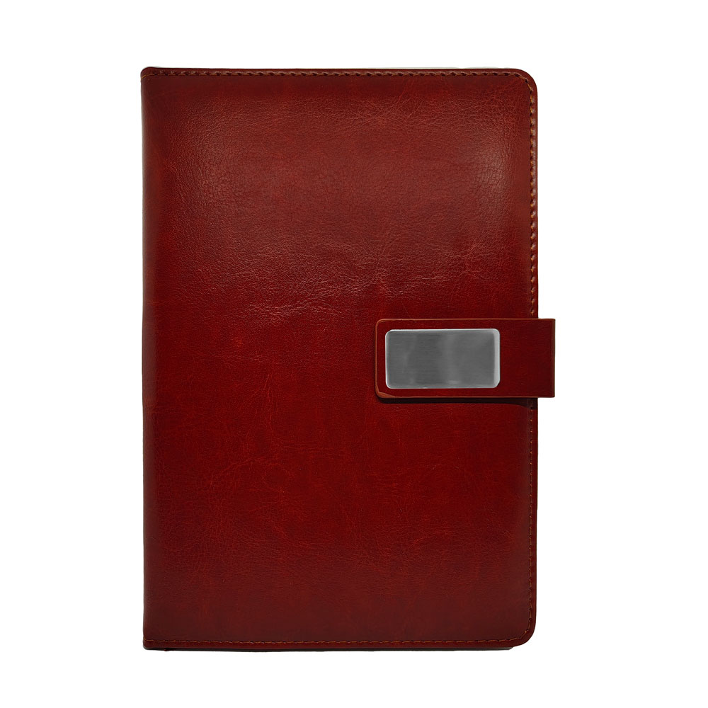 This A5 notebook comes in a brown color with premium PU fabric and 96 sheets of 100 GSM paper. The metal engraving plate adds a professional touch for branding or personal use.