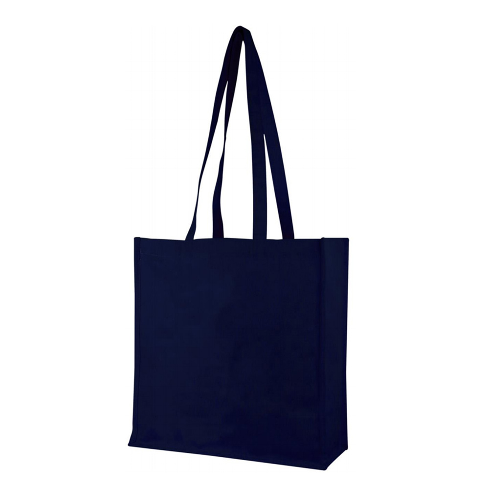 This blue 10 OZ canvas tote bag with an all-sides gusset offers extra space for carrying items. Ideal for eco-friendly promotional giveaways or as a personal bag for everyday use.