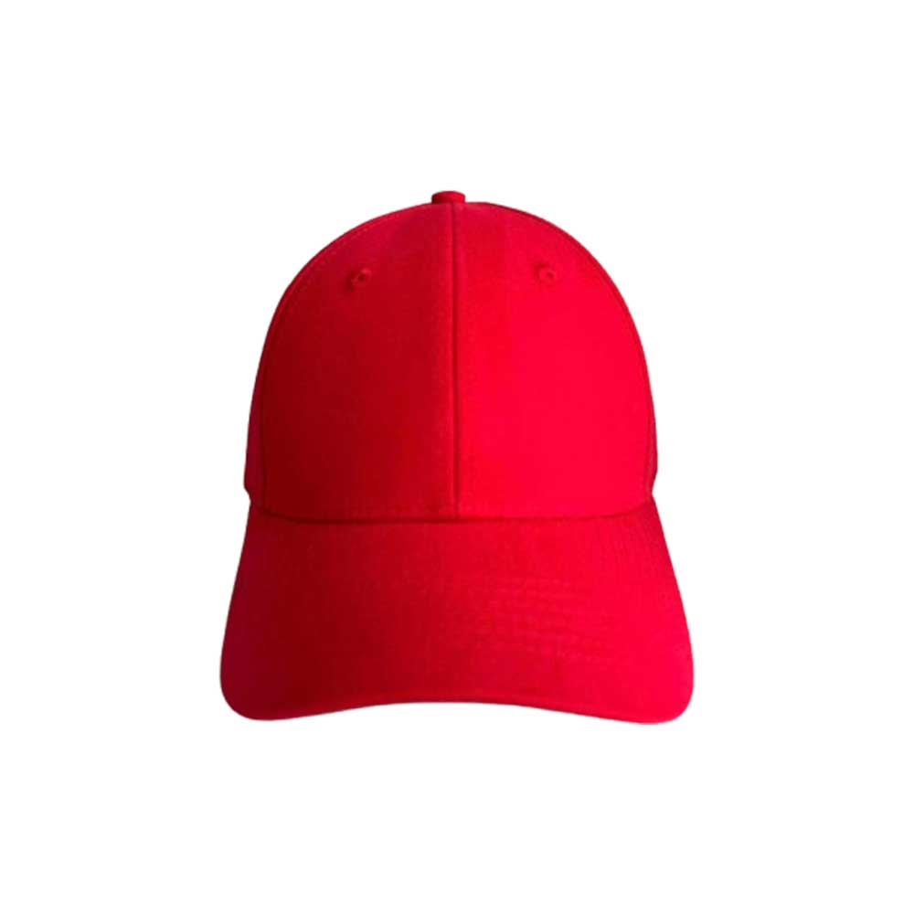 A bright red 6-panel premium cap made with 100% cotton fabric. This cap is perfect for promotional purposes or casual wear, offering style and comfort.