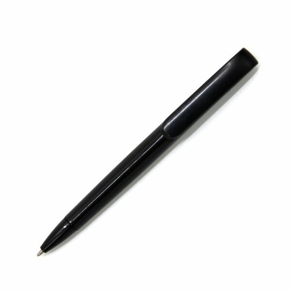 A sleek black plastic pen with smooth writing quality. Customizable with laser engraving, perfect for promotional use or as a simple writing tool.