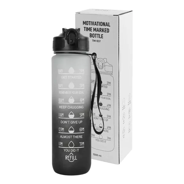 Large 1000 ml motivational water bottle with time markers