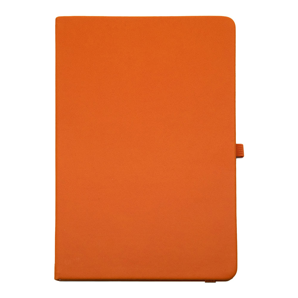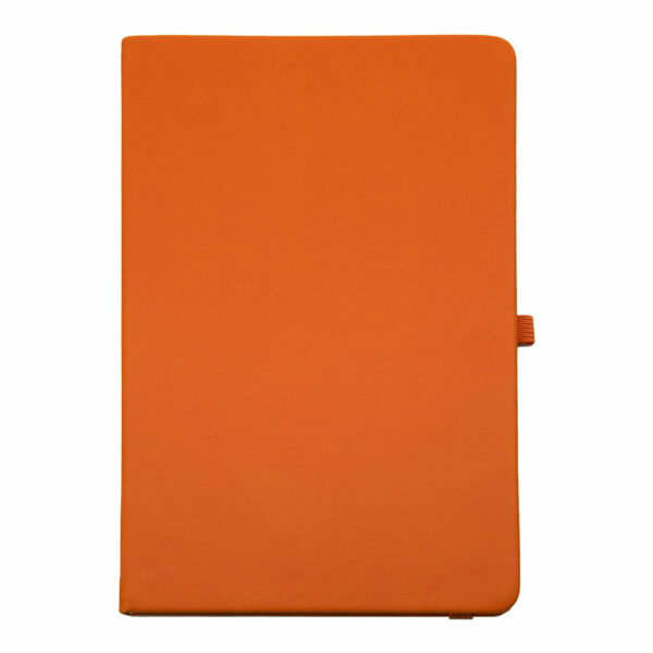 Soft PU leather A5 notebook in orange, featuring a pen loop for convenience and a stylish design for everyday use.