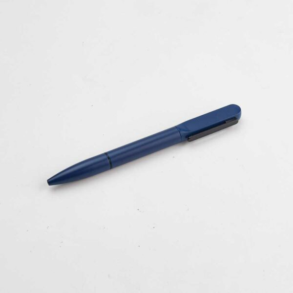 A premium blue metal pen with twist-open functionality and a seamless light-up logo, combining practicality and elegance in one writing tool.