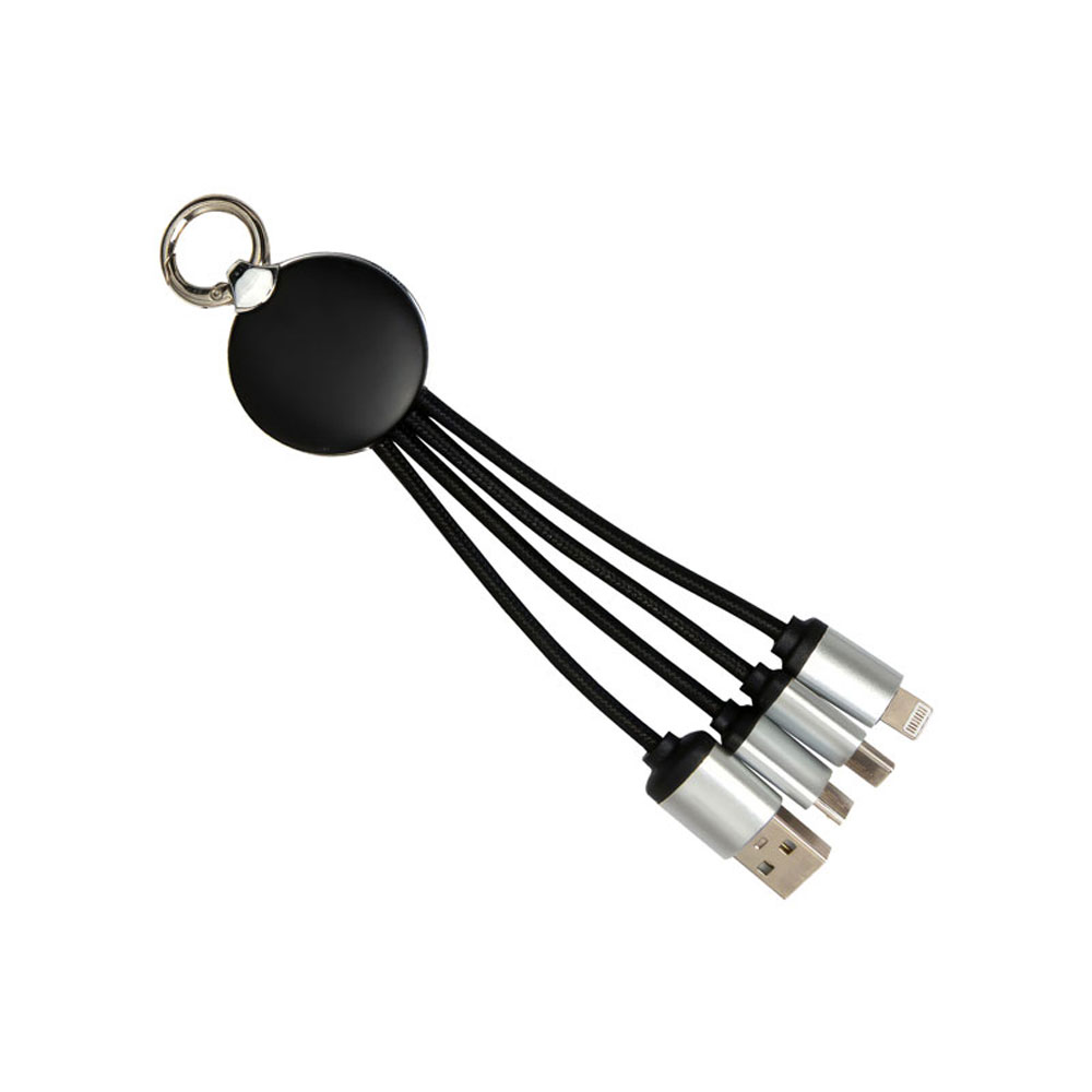 A versatile 3-in-1 charging cable with an eye-catching light-up logo and keyring, supporting USB-A, USB-C, Micro USB, and Lightning ports.