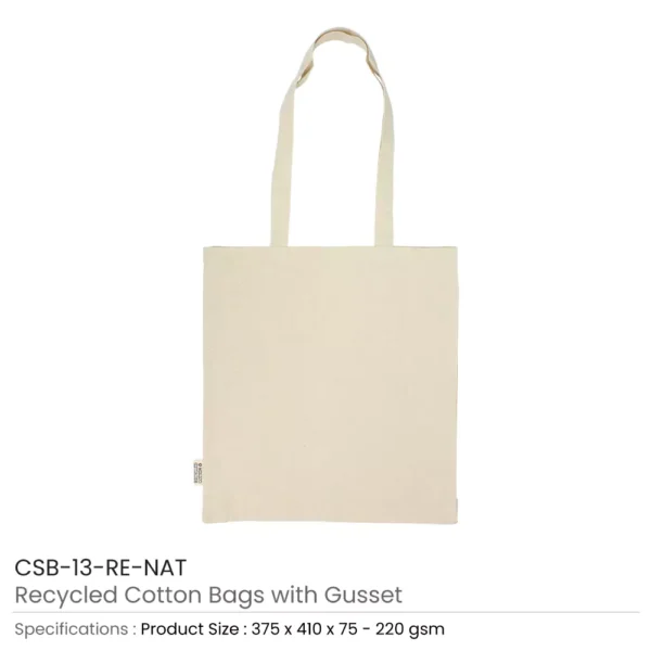 Recycled Cotton Tote Bags with Gusset 8 Oz