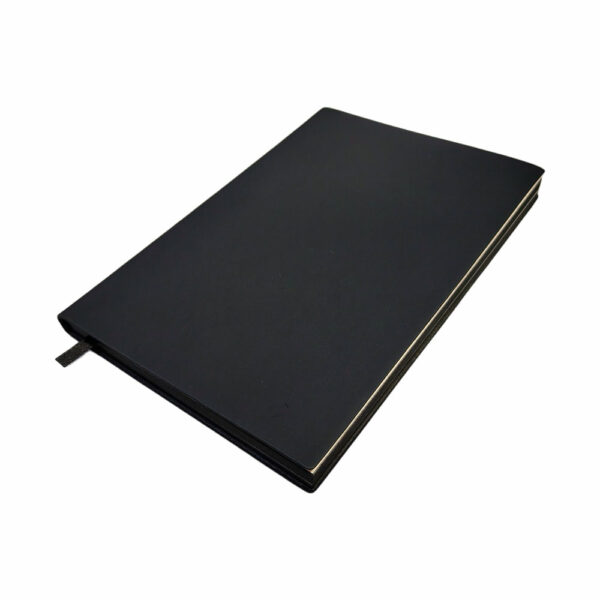 Premium thermal PU leather black notebook with black page edges, designed for professional use and elegance.