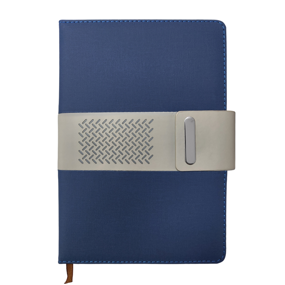 A5 Blue Premium Fabric Notebook with PU, Magnetic Enclosure & Pen Loop