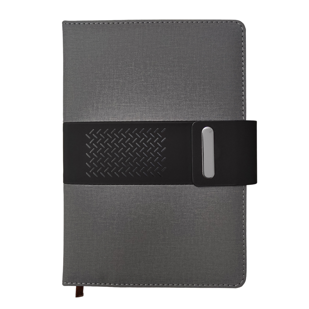 A5 Grey Premium Fabric Notebook with PU, Magnetic Enclosure & Pen Loop