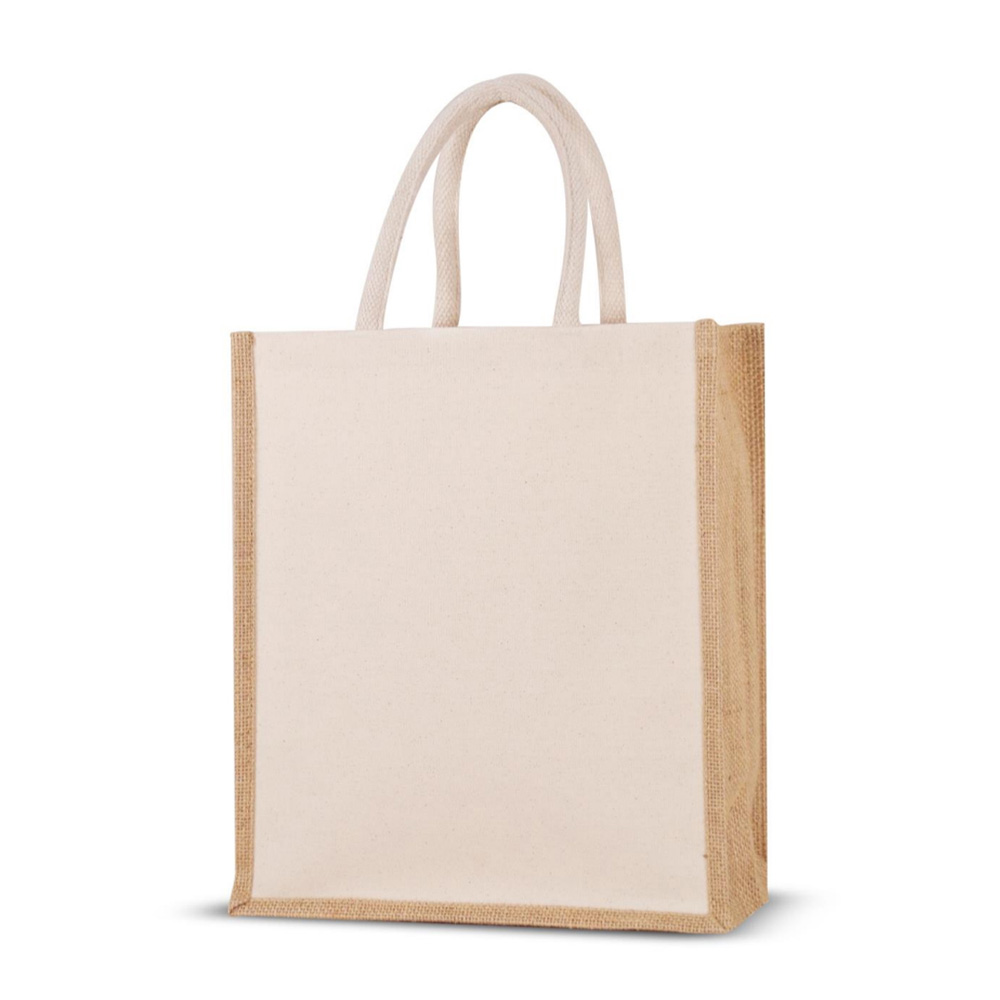 10 OZ Vertical Laminated Canvas Bag with Jute Gusset (Natural)