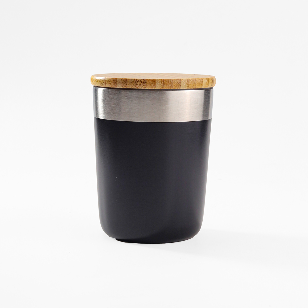 Double Wall Insulated Metal Cup with Bamboo Lid