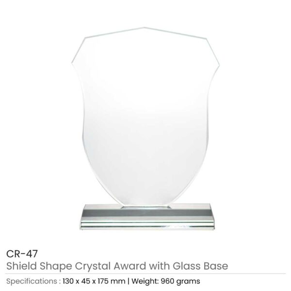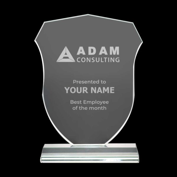 These shield-shaped crystal awards feature a wave-shaped top and a large engraving area for customization. Supported by a substantial glass base, they come in a black carton gift box for an elegant presentation. Ideal for leadership awards, excellence recognition, and corporate achievements, ensuring a sophisticated and timeless appeal.