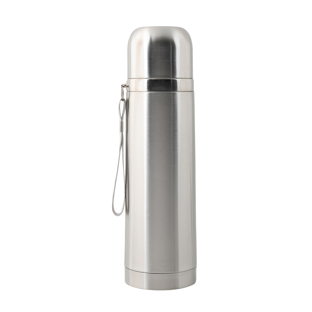 The Termos silver thermal bottle features vacuum insulation to keep beverages hot or cold for long periods. It has a convenient sipper and handle for easy portability. With a 500 ML capacity, this bottle is ideal for outdoor use, travel, or daily commutes. It comes packaged in a white box and can be customized with laser engraving, screen printing, and UV printing.