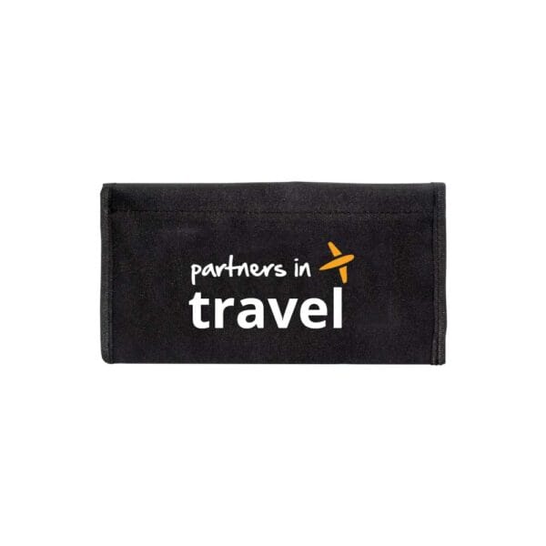 Durable travel document pouches with a secure sticky closure, ideal for promoting businesses in the travel industry.
