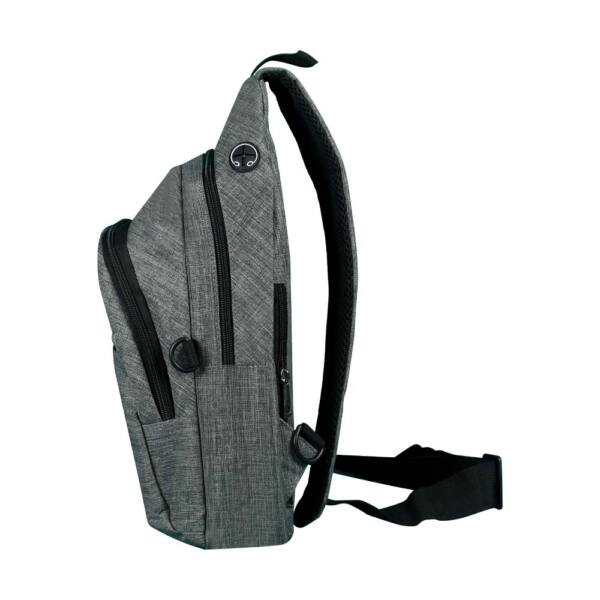 A versatile triangular sling bag with multiple compartments and a headphone hole, perfect for daily use or travel.