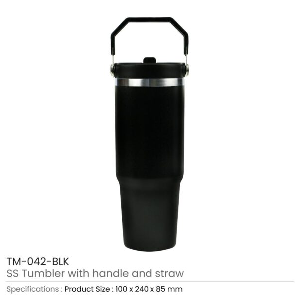 Tumbler with Handle & Straw SS Double Wall 900ml