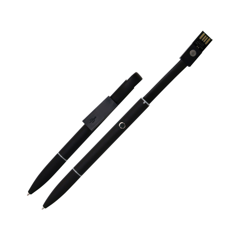 Black rubberized finished pen with twist action mechanism, USB – 16gb capacity